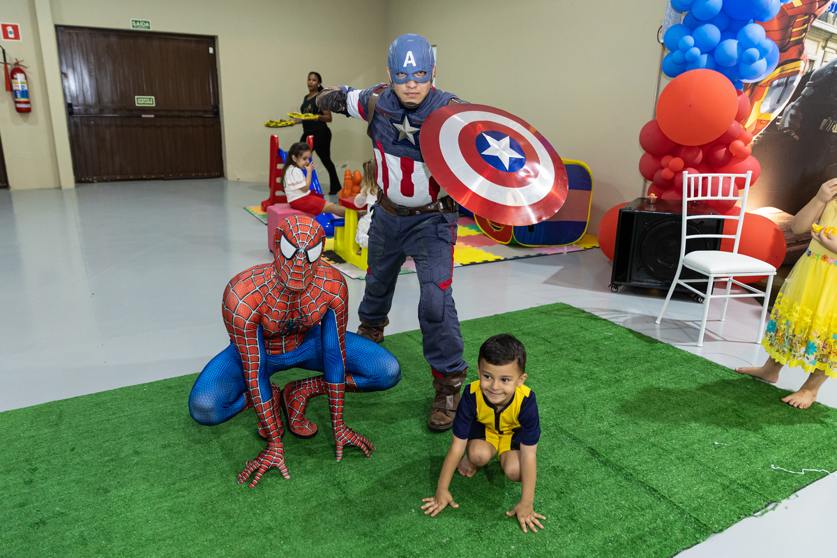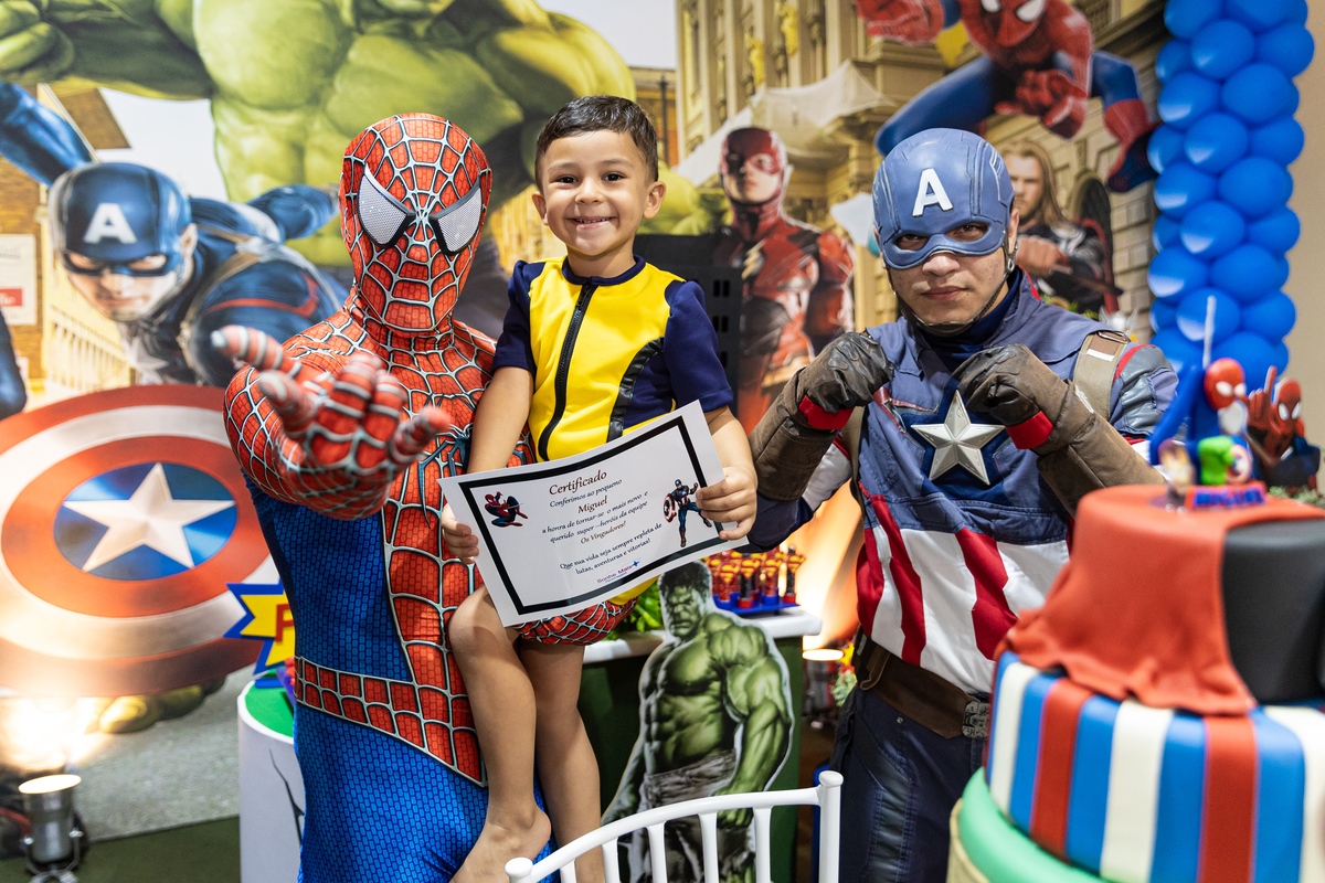 O aniversário do Miguel foi no clima dos Avengers, com direito à presença do Homem-Aranha e do Capitão América deixando a festa ainda mais especial. Foi uma tarde cheia de alegria, brincadeiras e momentos que vão ficar na memória.
