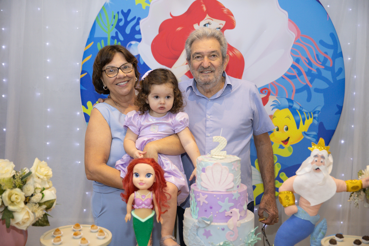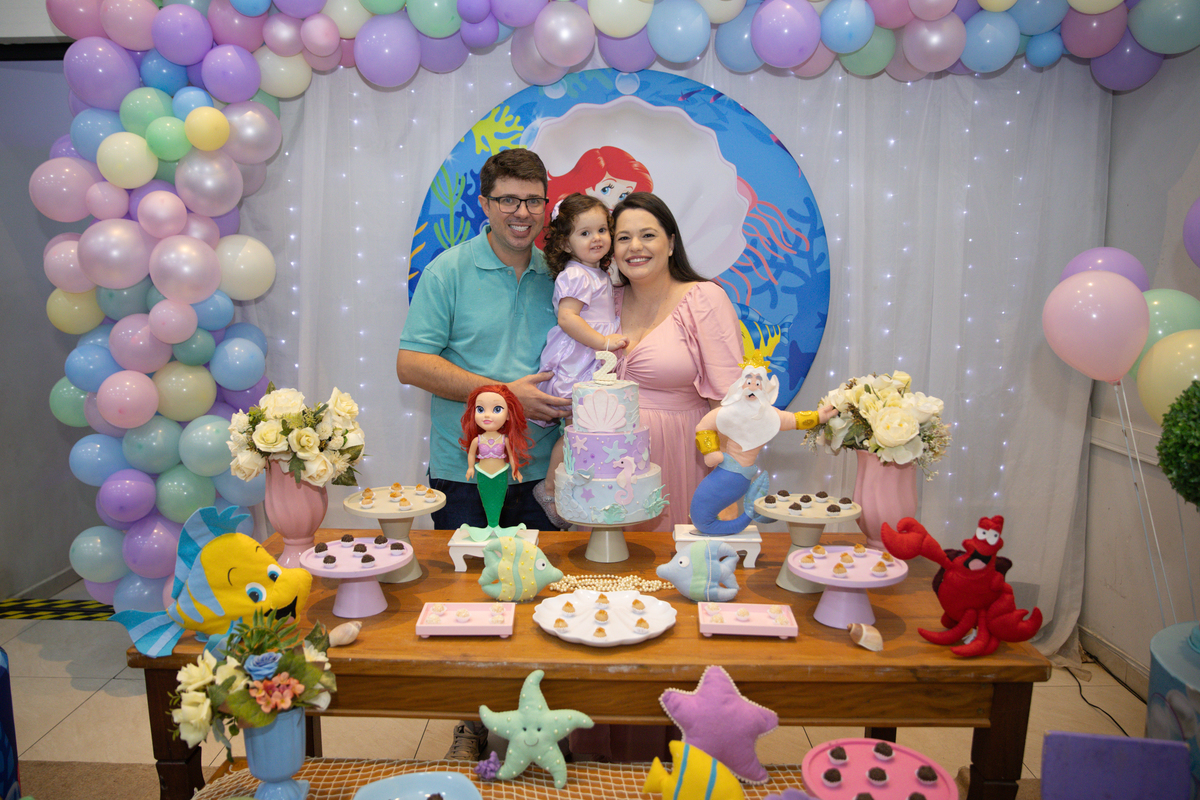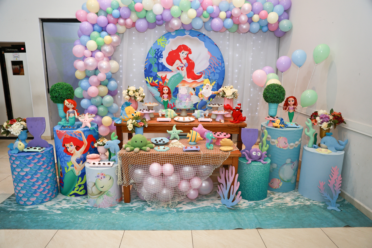 O aniversário da Beatriz foi celebrado com uma decoração encantadora da Pequena Sereia, cheia de cores e detalhes que deixaram tudo ainda mais especial no Buffet Pipoca.